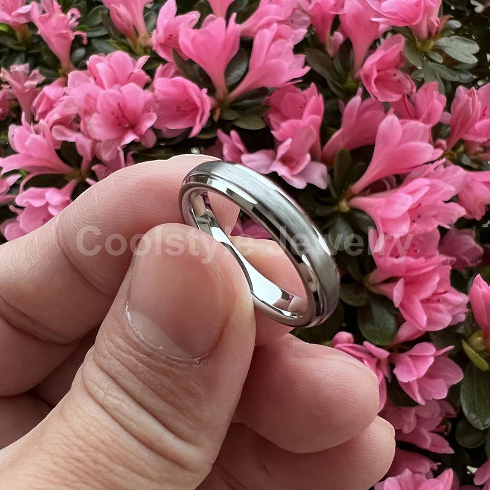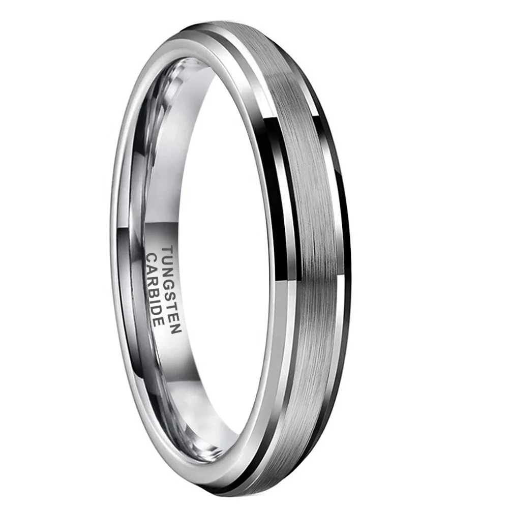 Coolstyle Jewelry Dropshipping Wholesale 4mm Stepped Beveled Edges Fashion Engagement Wedding Band Tungsten Ring for Women Men
